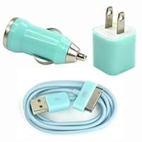 Buy Case Star Turquoise Blue USB Wall Charger, USB Mini Car Charger, 3 Feet USB Charger, Sync Data Cable Now