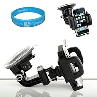 Universal Adjustable Windshield Mount for Samsung Galaxy Nexus SCH-I515 / SPH-L700 + SumacLife TM Wisdom Courage WristbandI would have given this a "5" but it won't let me mount my Samsung Galaxy Nexus horizontally...the jaws won't expand far enough. That said, the lever-controlled suction mount holds to the windshield firmly. There are 3 adjustments on the arms/swivels to get this positioned as you need. There are soft rubber grips that squeeze the phone and a small lip that flips down to support the phone on the bottom. This is larger than most windshield-mounts but better-equipped to hold the phone and mount to the windshield without worries.